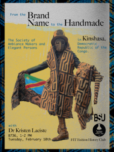 “From Brand Name to the Handmade: The Society of Ambiance Makers and Elegant Persons in Kinshasa, Democratic Republic of the Congo” with historian Kristen Laciste